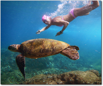 After a safety talk, Karlyn will escort you around Kahalu�u Bay where you will see hundreds of tropical fish, colorful coral reef and hopefully�turtles! While you swim, Karlyn will offer swim technique suggestions and work with you to help you improve your stroke. Open water skills and drills, sighting and drafting techniques will also be offered.